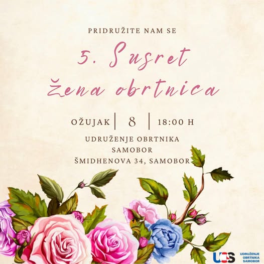 Iz Udruženja obrtnika Samobora i Svete Nedelje stiže poziv za 5. Susret žena obrtnica, koji se organizira povodom Međunarodnog dana žena, u subotu, 8. ožujka, s početkom u 18:00 sati u prostoru Udruženja obrtnika.