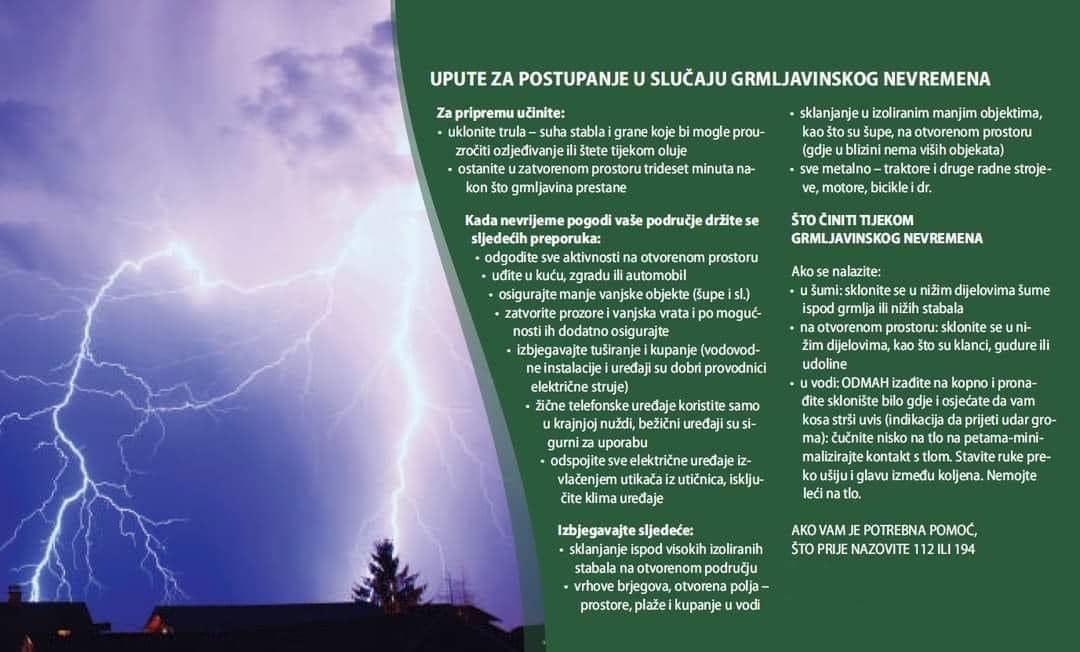 Lokalno je moguć izraženiji pljusak, s njim veća količina kiše u kraće vrijeme, vrlo jak i olujan vjetar te tuča.