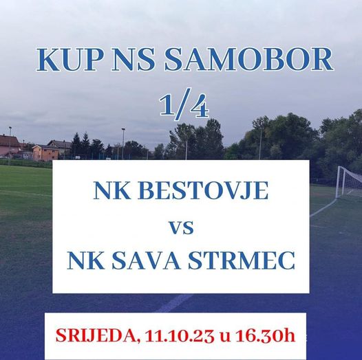 Danas se od 16:30 u Bestovju igra 1/4 kupa NS Samobor. NK Bestovje dočekuje Savu iz Strmca.