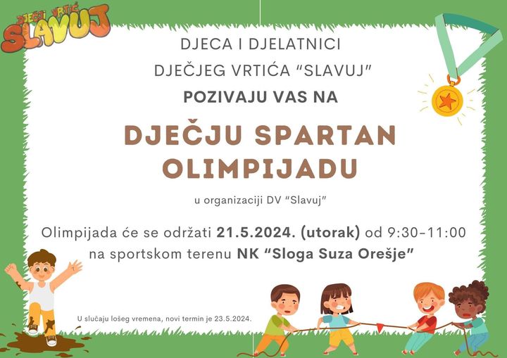 Uslijed loše vremenske prognoza za sutrašnje jutro, odgađa se manifestacija Dječja Spartan olimpijada, za petak, 24. svibnja.